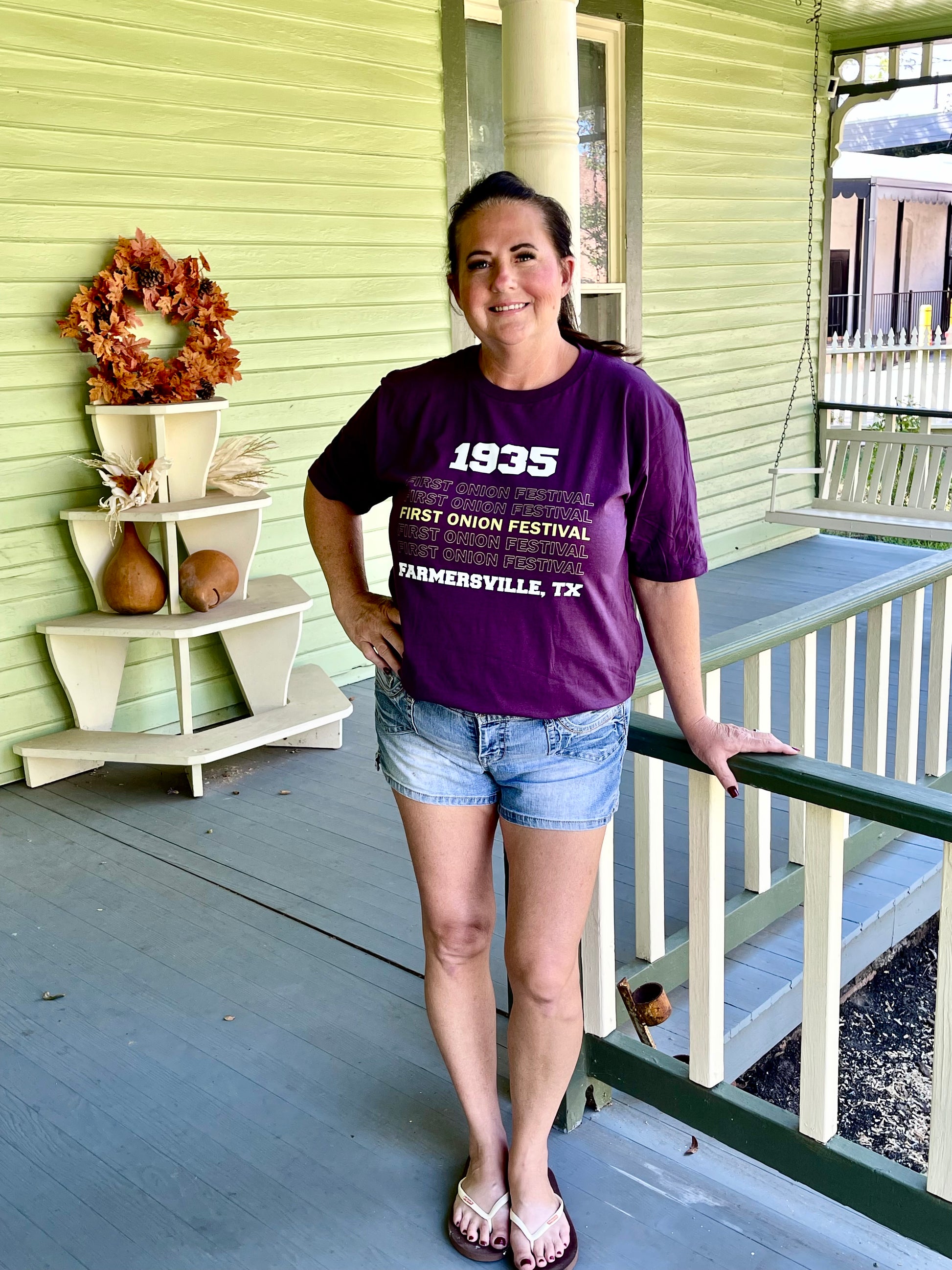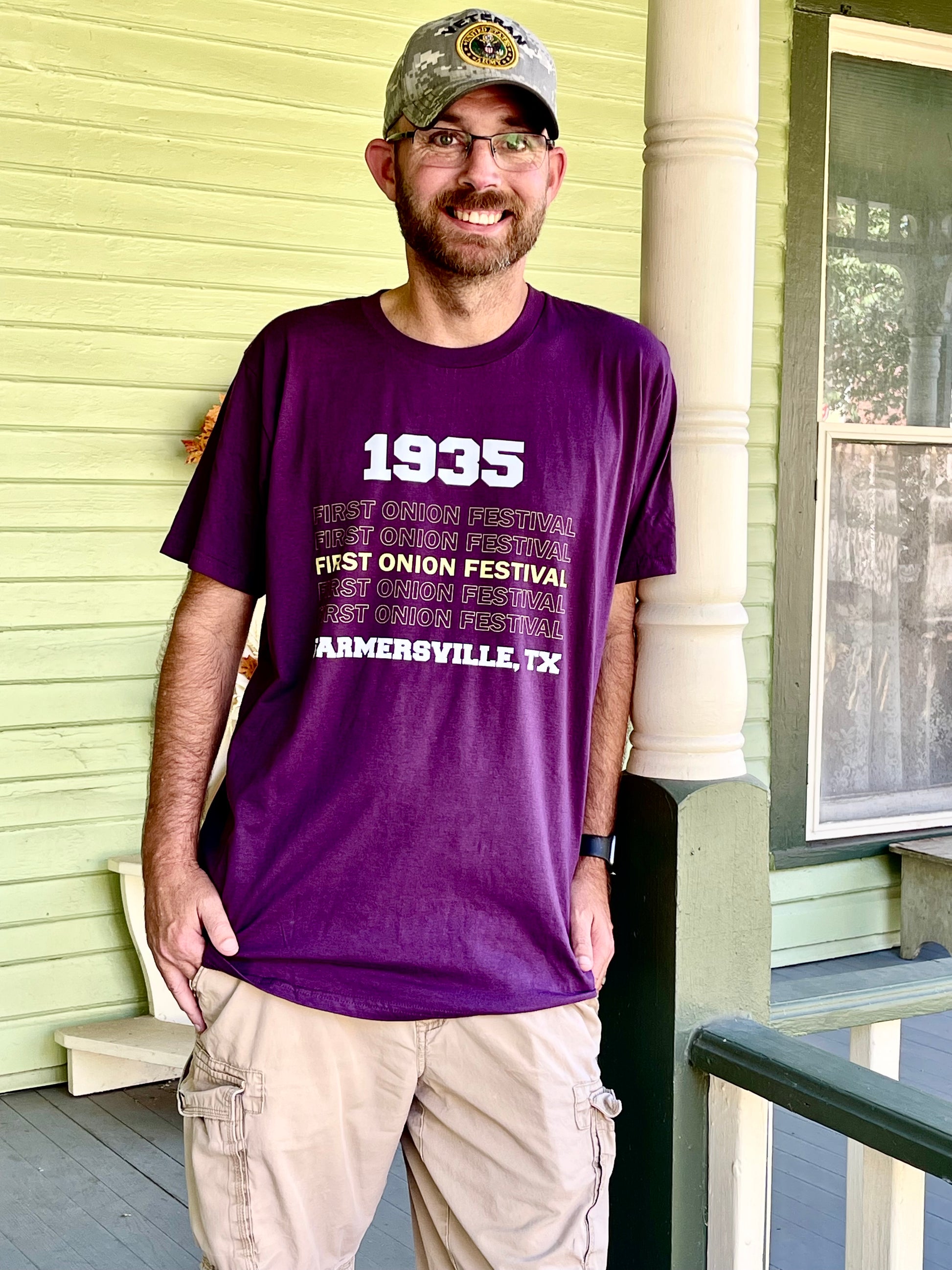 Vintage 1935 Onion Festival T-shirt in Deep Plum Color. The tees are all in adult sizes.