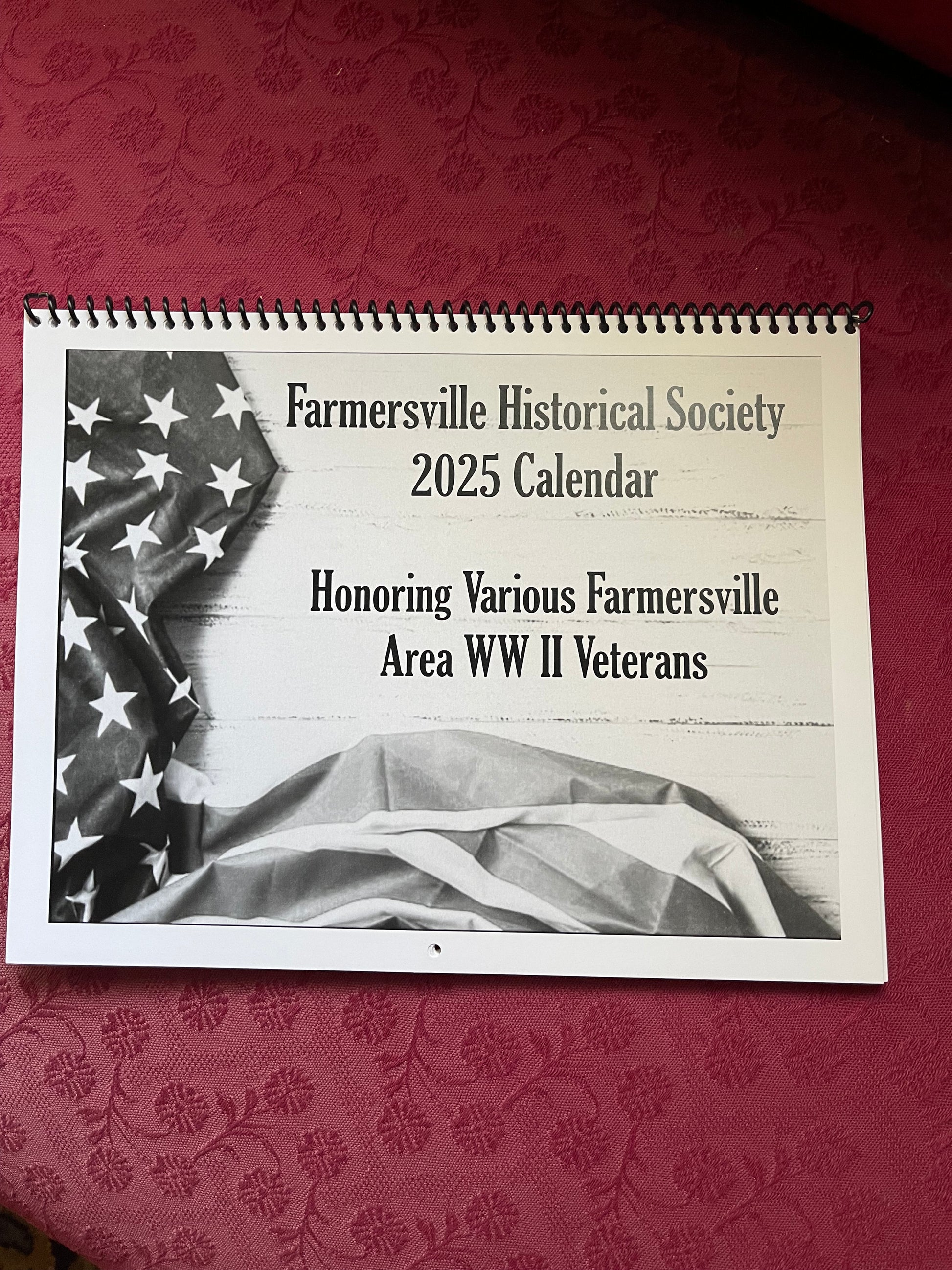This year is a special edition of some of our WWII Veterans of Farmersville and surrounding areas. A special calling was felt in the hearts of our members, Winnetta Morrow, Bertie Neu, and Marty Shelton, who worked on the annual calendar to research and find those who served our country far and near to home of those who lived in and around Farmersville, Texas. From January through December you will find photos and stories depicting the men and women who will be displayed monthly for you to view. Just $10. All proceeds from our publications go towards our preservation efforts for the Historic Bain-Honaker House and Museum. We Thank You for your support.