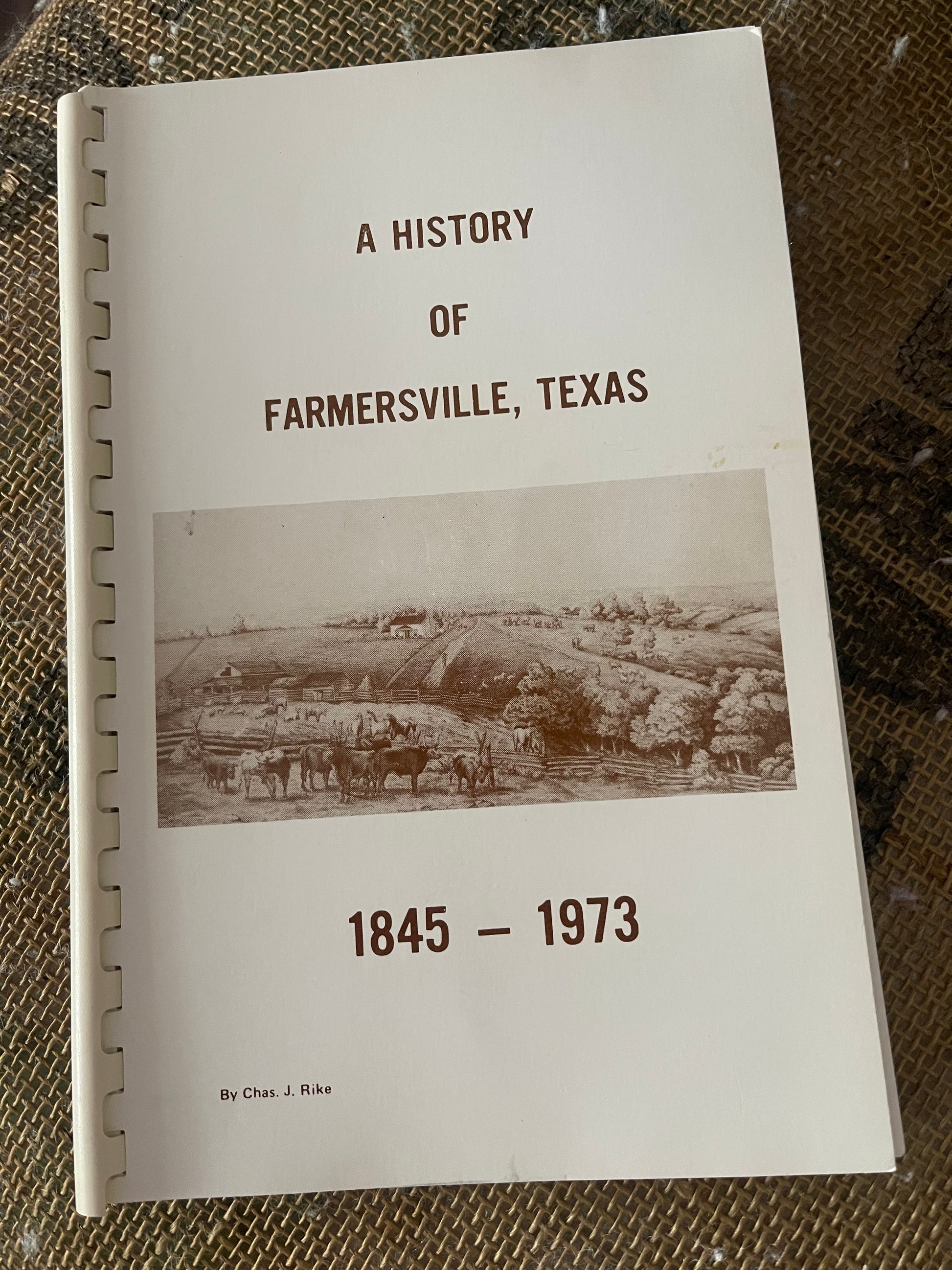 A history of Farmersville, Texas, 1845-1973, written by Chas J. Rike.