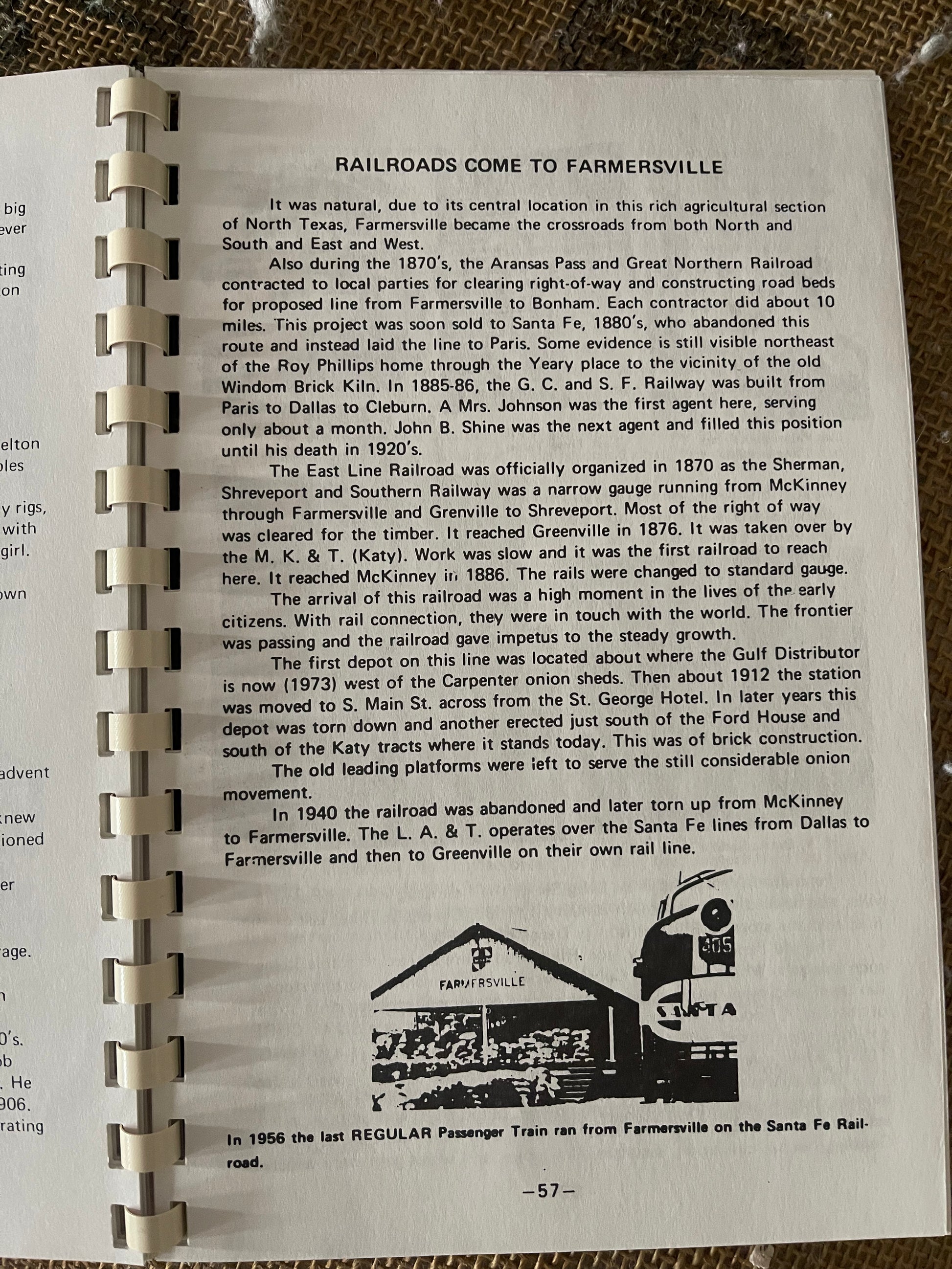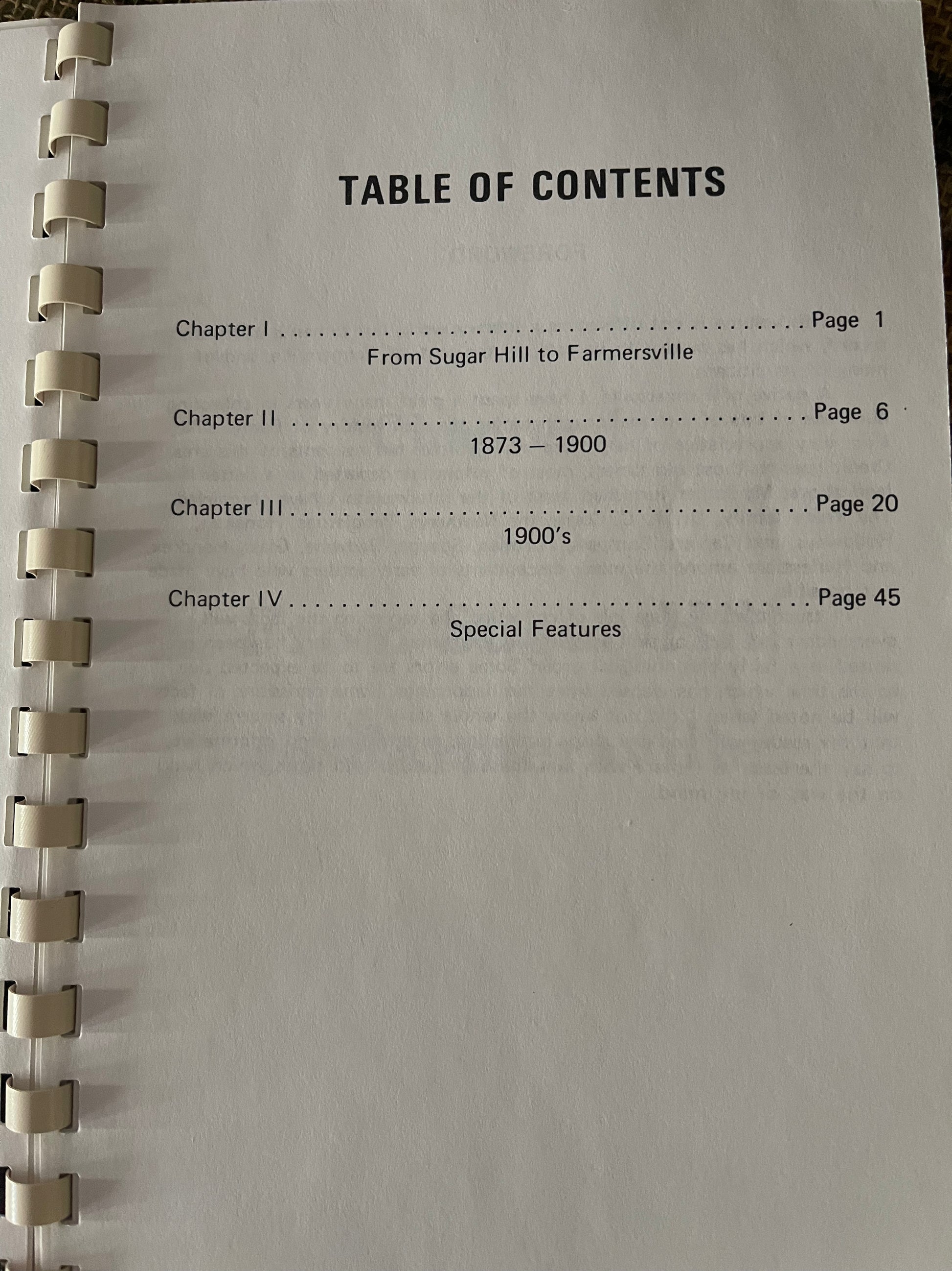 This is a one of a kind book, a great wealth of information on the history of the town of Farmersville, Texas.