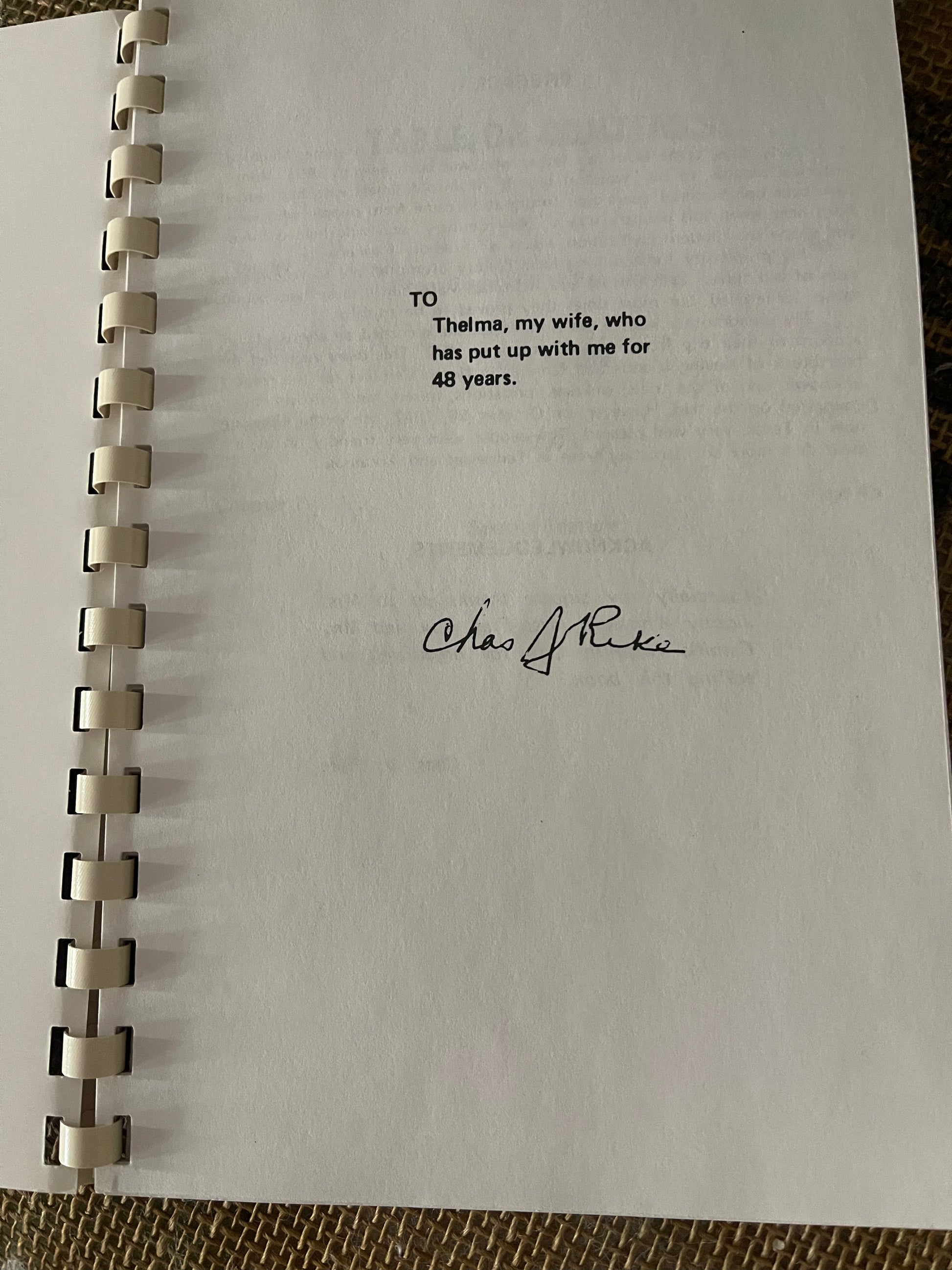 Chas J. Rike autograph (photocopied) is displayed on the inside of the cover.