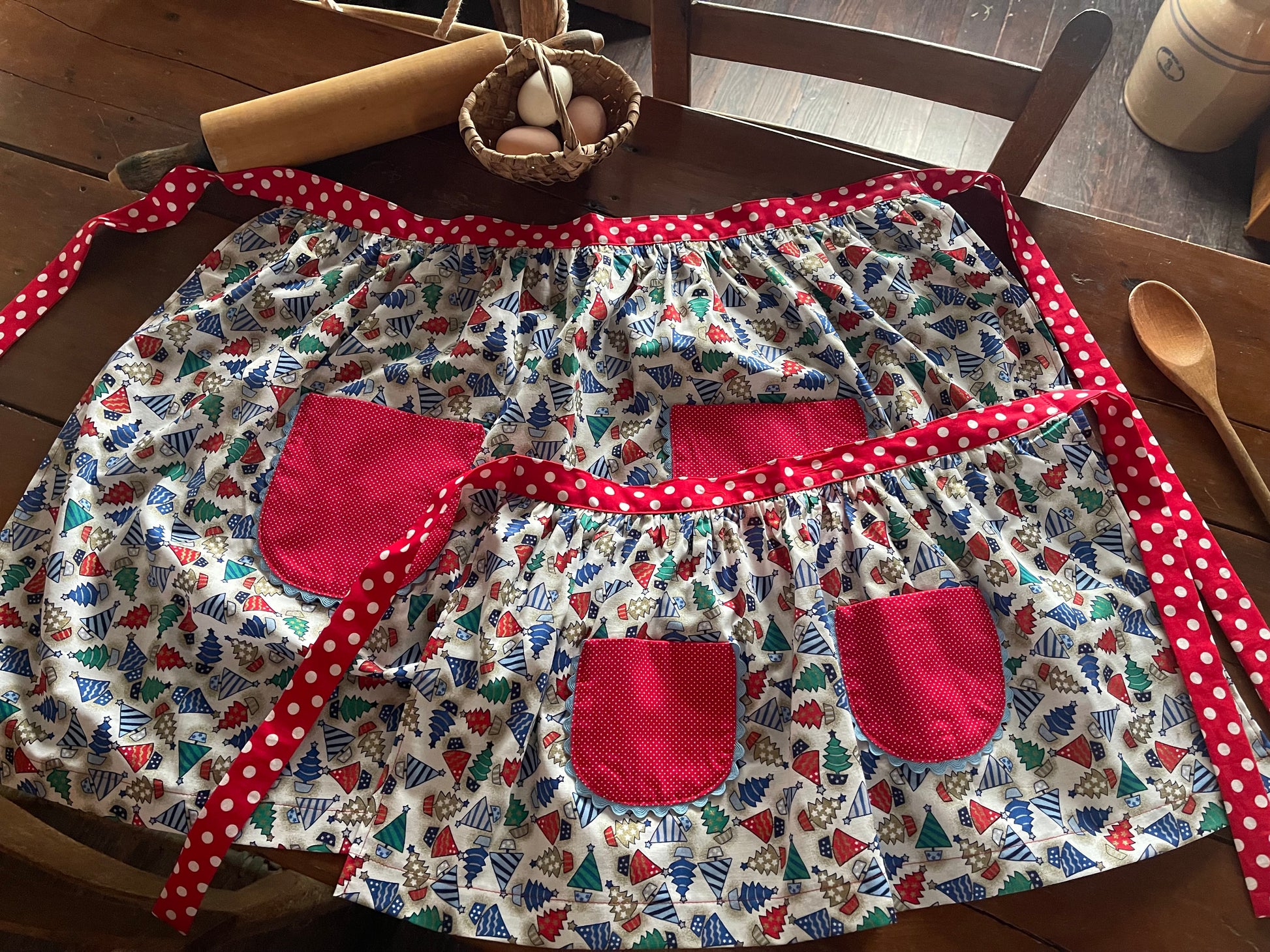 This hand-made apron set is just the thing you need! All natural cotton blend and the cutest Christmas patterns!