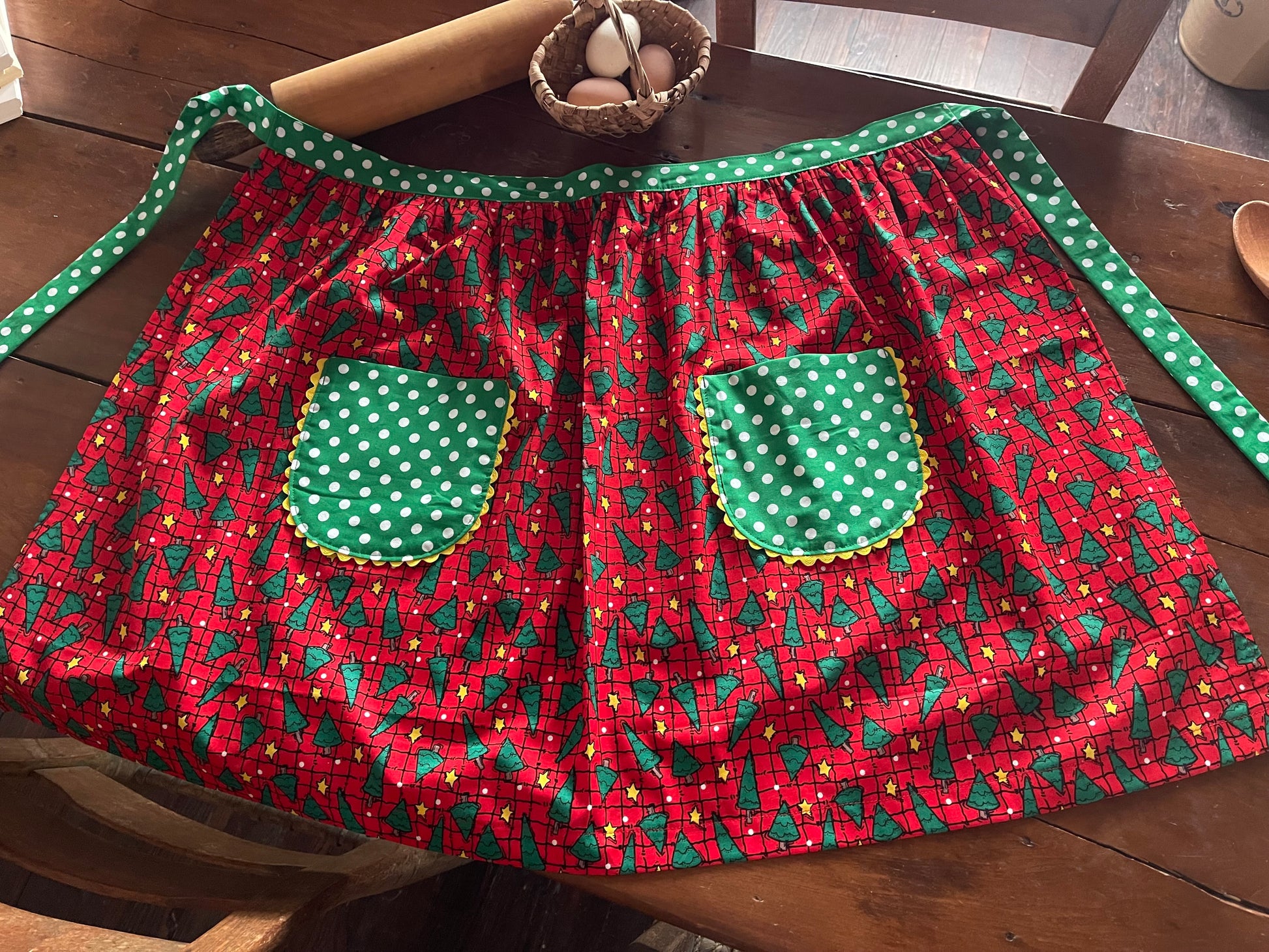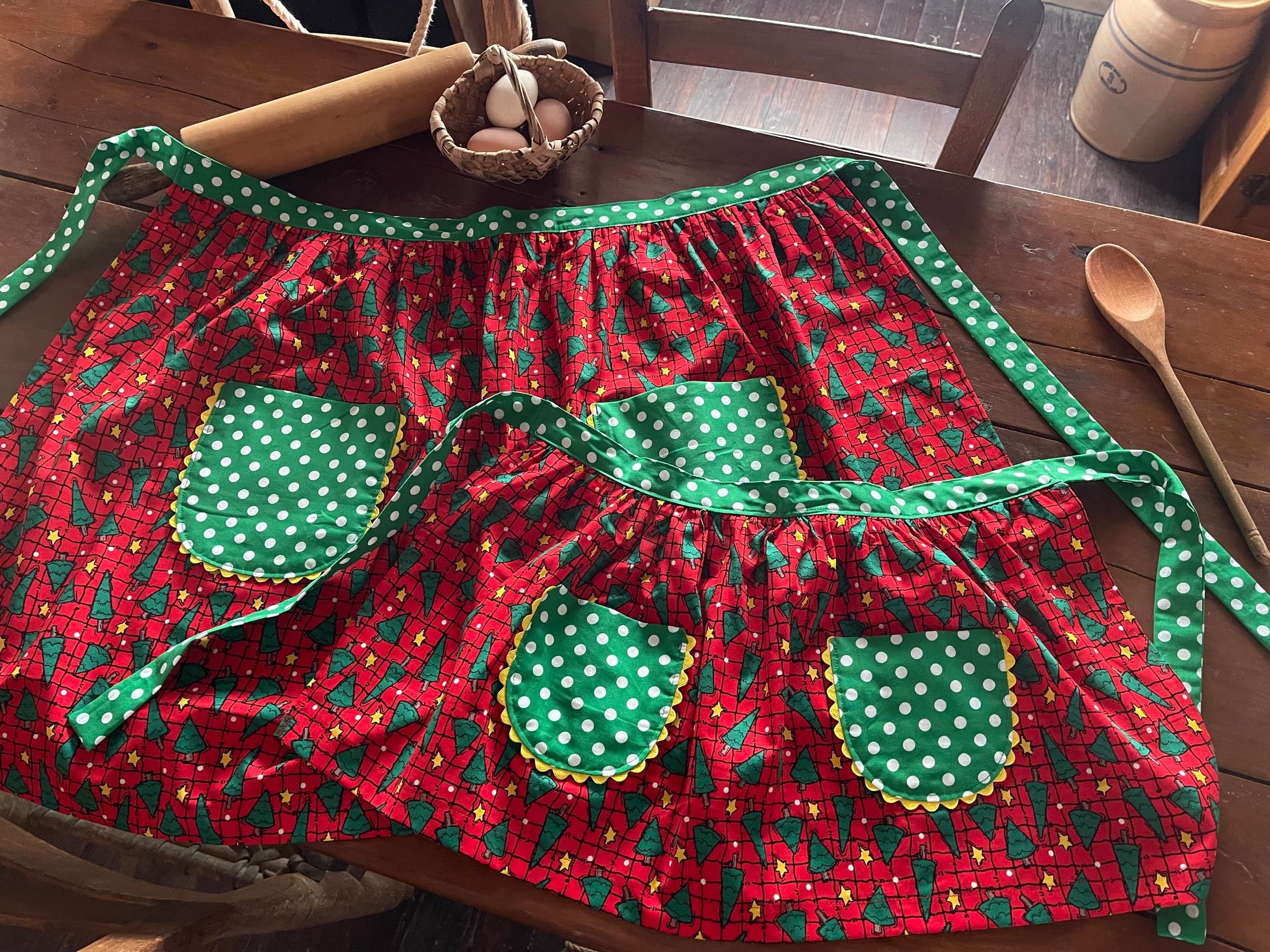This hand-made apron set is just the thing you need!  All natural cotton blend and the cutest Christmas patterns!