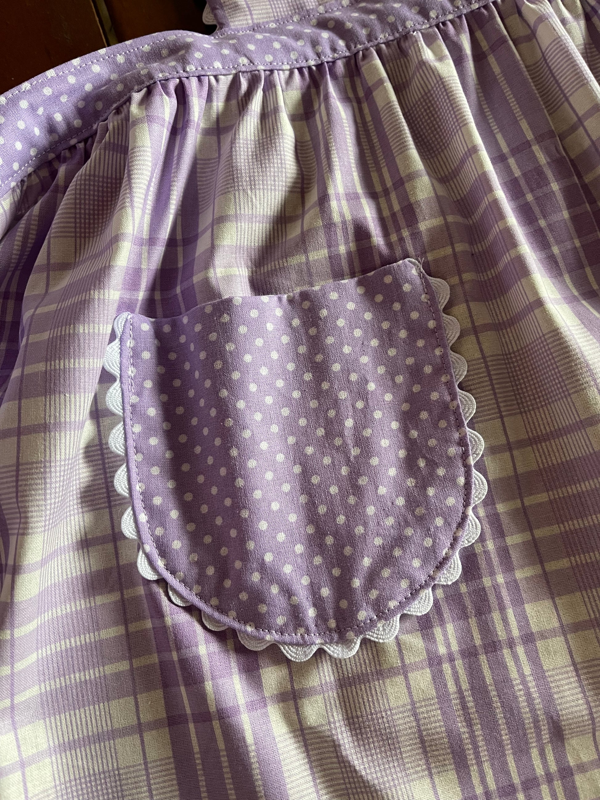 Set of 2 Vintage Replica Fabric Kitchen Aprons with Pockets. One Adult and one Child size.